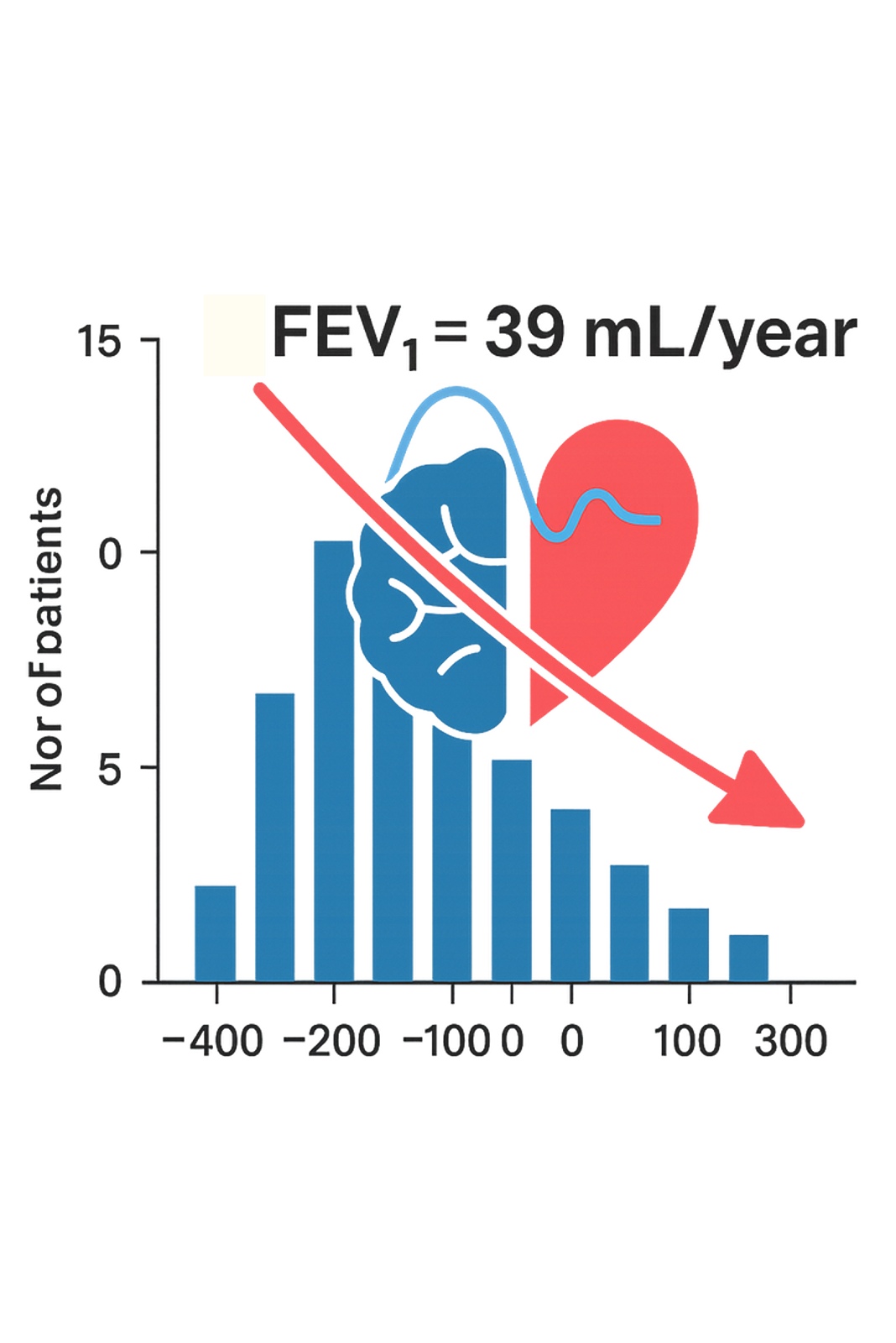 In this prospective study, we followed a cohort of individuals with schizophrenia or bipolar disorder, all of them active smokers, for more than three years. We observed that half of the participants (51.7%) experienced a rapid decline in lung function—defined as a decrease of 40 mL or more per year in the forced expiratory volume in one second (FEV₁). This rate of deterioration is greater than that described both in the general population and in people with chronic obstructive pulmonary disease (COPD).